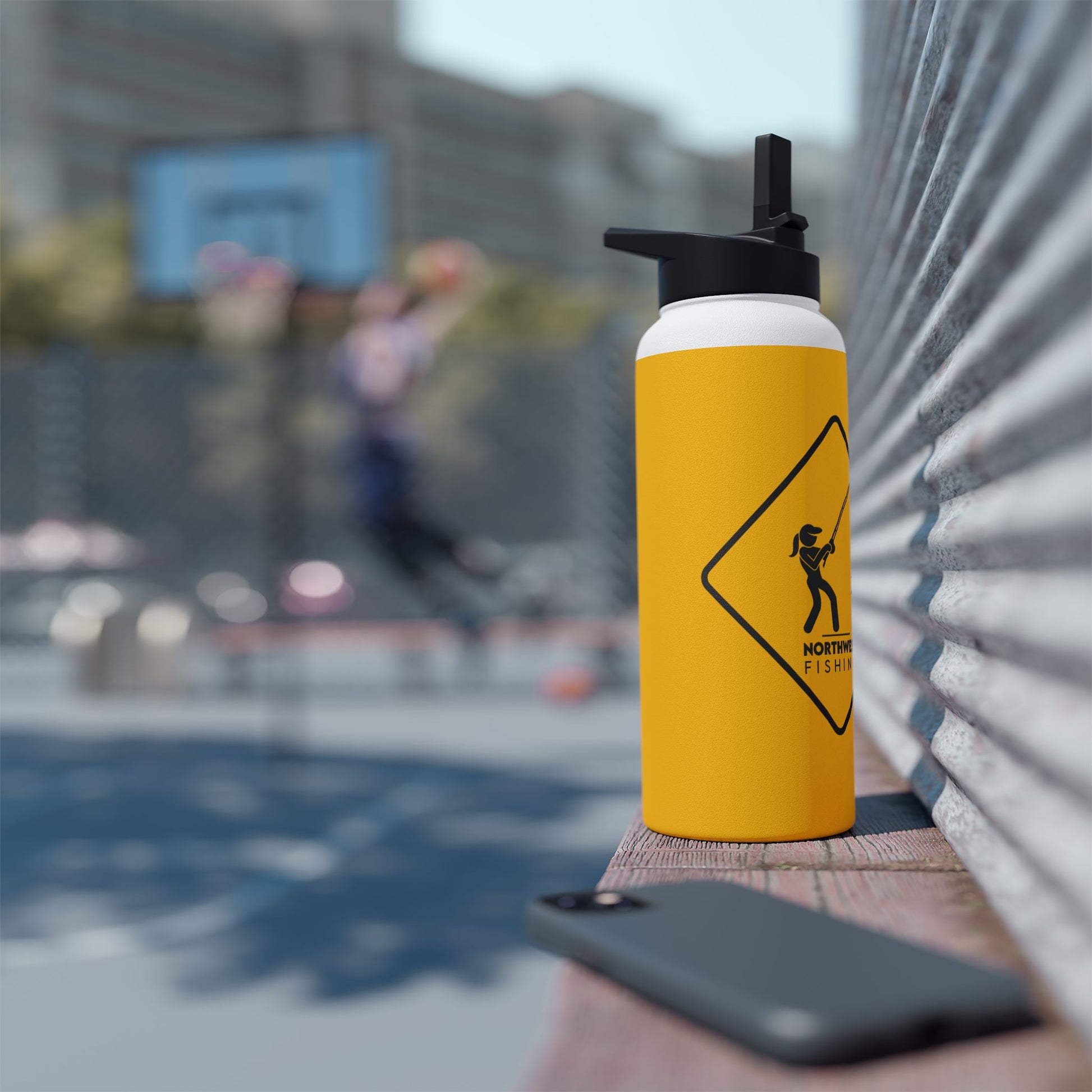 Warning! Lady Fishing Water Bottle